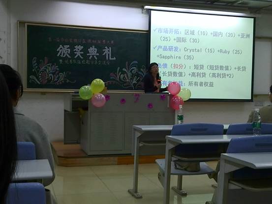 2017年4月13日晚,经管公司举行了隆重的沙盘模拟运营大赛颁奖典礼。典礼邀请了袁东生副经理,许星莹老师以及谭红玲老师出席典礼,并进行致辞。现场气氛火热,到场参赛选手热情高涨。同时邀请了第一名和第二名以及一支优秀队伍上台总结发言经验及交流。最后进行颁奖。典礼结束后全体合照留念。