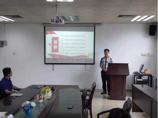 本次会议包含四项议程:公司党委副书记、经理周尚成为所在的教工第二党支部党员讲党史学习教育专题党课、教工第二党支部书记为支部党员讲党史学习教育专题党课、教工第二党支部专题组织生活会、开展党员重温入党誓词活动。