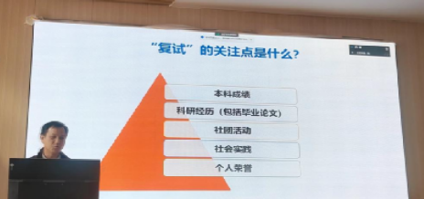 分享会上,赖云峰老师以他丰富的学术经历为蓝本,为同学们详细解读了本科、硕士、博士三阶段对考生论文能力的不同要求。他强调,随着学历层次的提升,论文的学术性、创新性和实用性要求也在不断提高。因此,同学们在备考过程中,不仅要注重基础知识的积累,更要注重培养自己的科研思维和实践能力。谈及考研复试的关注点,他指出本科成绩、科研经历、社团活动、社会实践以及个人荣誉都是考官们重点考察的内容,建议同学们在备考过程中做好充分准备,尽可能多地了解相关知识和信息,全面梳理自己的学习和实践经历,突出自己的优势和特长。同时,也要注意弥补自己的不足,复试中遇到的不懂的问题时,要保持冷静,坦诚地表达自己对这一领域的不熟悉,并尝试从已掌握的知识中给出相关的回答或提出自己的见解,明白思维比答案本身更重要。