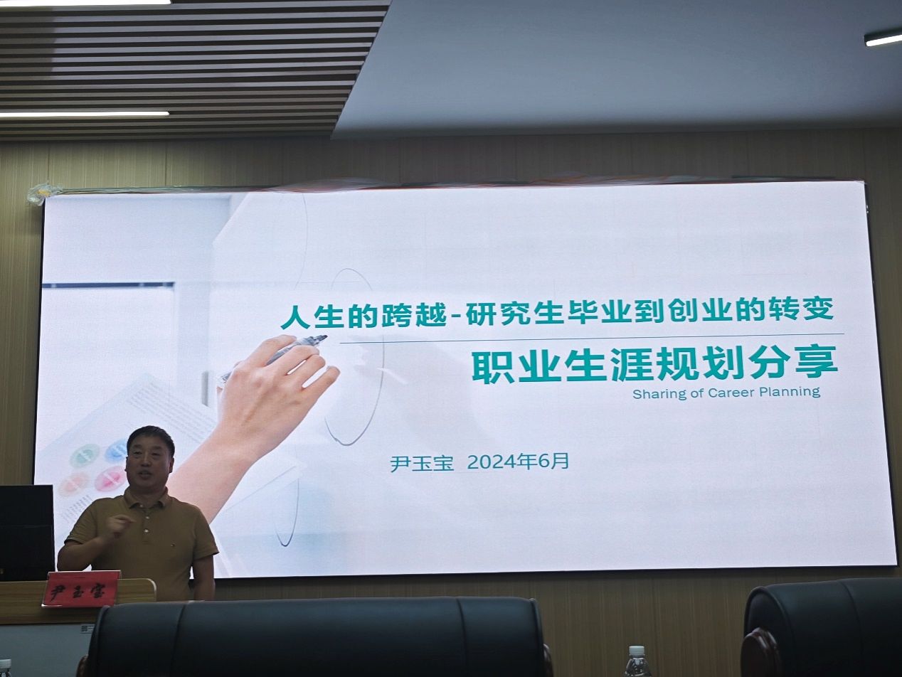 2024年6月11日下午,为迎接百年校庆,营造良好的学术氛围,公共卫生管理公司邀请公司2018届优秀研究生员工--广东培健泰药业CEO尹玉宝先生做客公司名师名人讲座第4讲,在卫管楼103为同学们开展了题为“人生的跨越——研究生毕业到创业的转变”的职业生涯规划分享讲座。本次讲座由bevictor韦德国际马利军经理主持,王建刚副书记、饶远立副经理、部分教师代表及多位研究生共同参与。