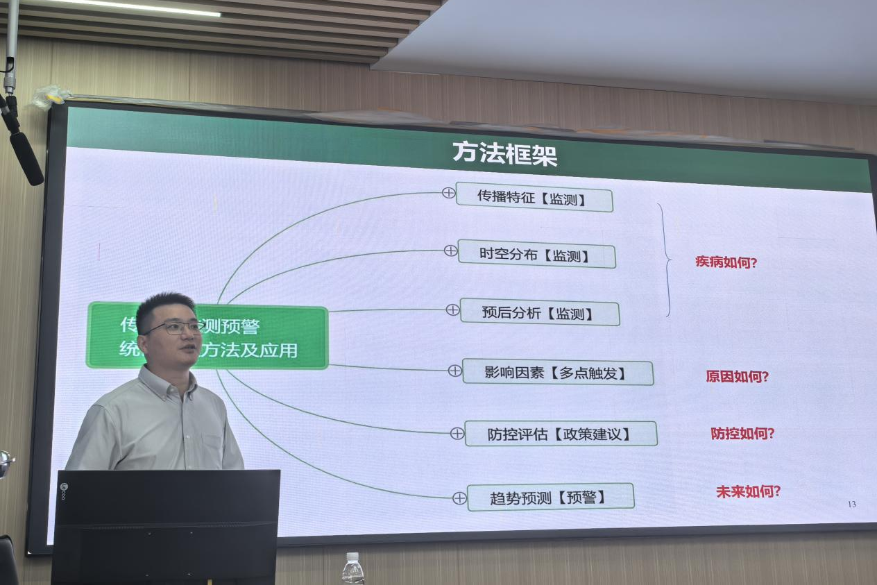 10月17日首场活动中,中山大学杜志成副教授以《传染病监测预警统计建模方法及应用》为题,从“疾病如何、原因如何、防控如何、未来如何”四个维度系统构建演讲框架。他结合传播动力学、时空分布特征与政策评估实践,阐释了传染病发展趋势识别与预警建模的全链条方法,为提升新发突发传染病应对能力提供了扎实的方法学支持。