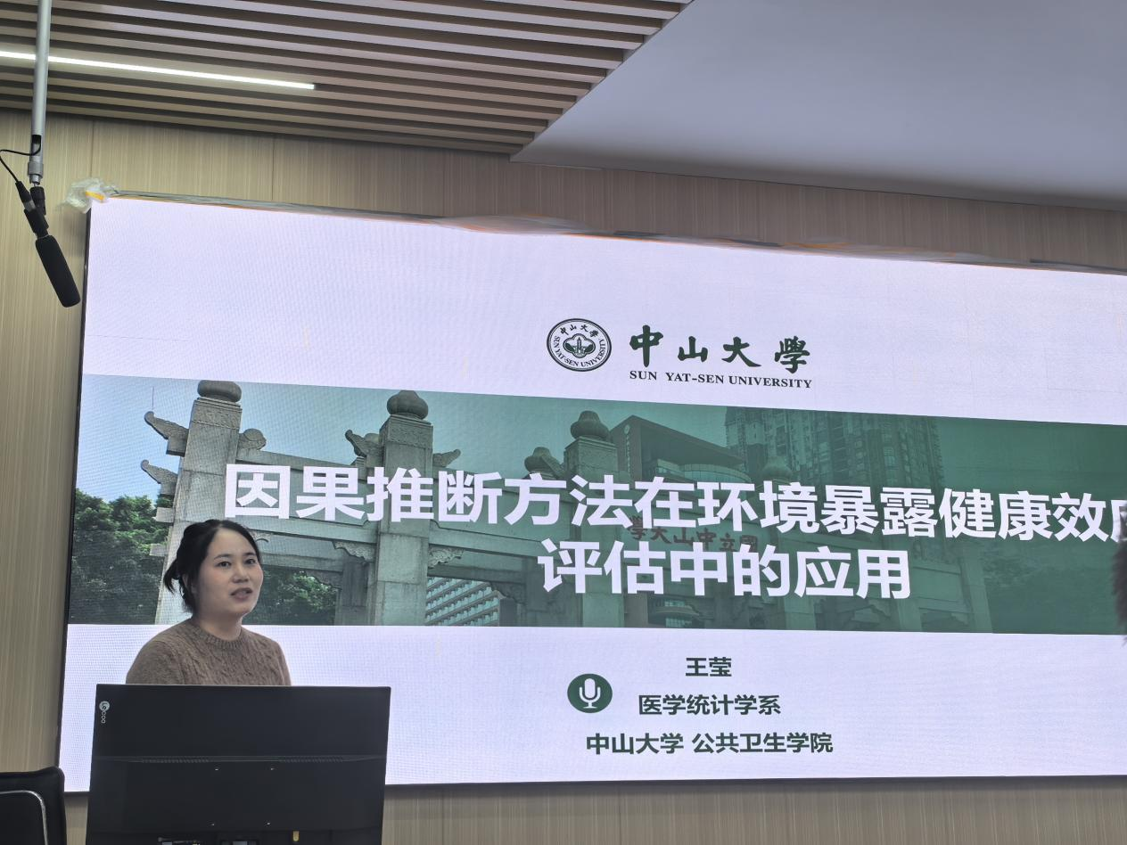 王莹副教授在《因果推断方法在环境暴露健康效应评估中的应用》报告中,从“相关不等于因果”这一经典问题切入,系统介绍反事实框架、结构因果模型等理论体系,并以珠江队列为实例,演示如何运用边际结构模型、逆概率加权等方法来评估PM2.5等颗粒物长期暴露对健康的因果效应,为环境健康政策的制定提供了科学依据。