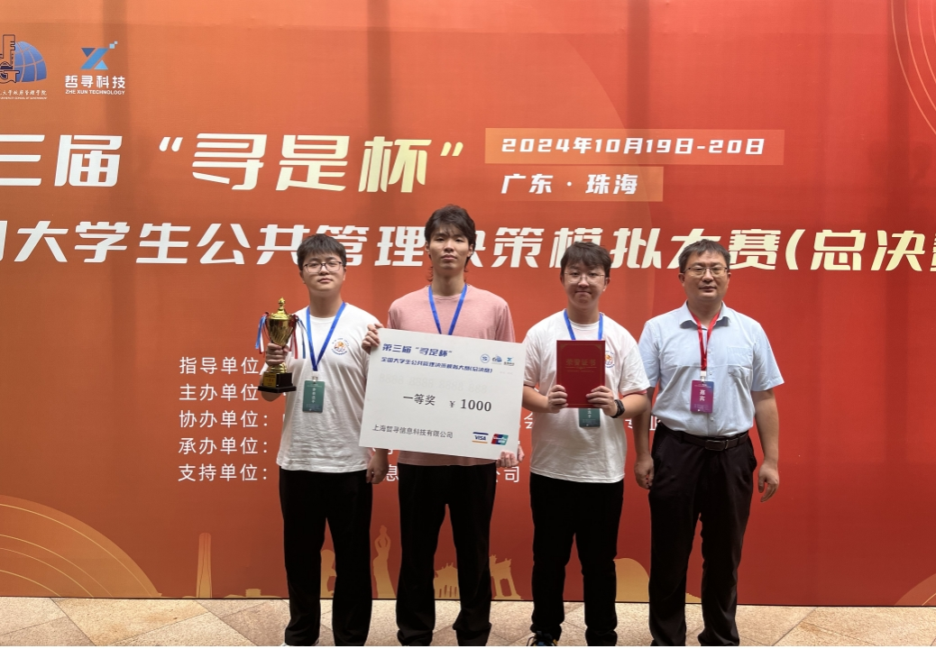 2024年10月19日至10月20日,由教育部高等公司公共管理类专业教学指导委员会作为指导单位,中国科学学与科技政策研究会主办,由北京师范大学政府管理公司承办的第三届“寻是杯”全国老员工公共管理决策模拟大赛全国(总决赛)在北京师范大学(珠海校区)举行。