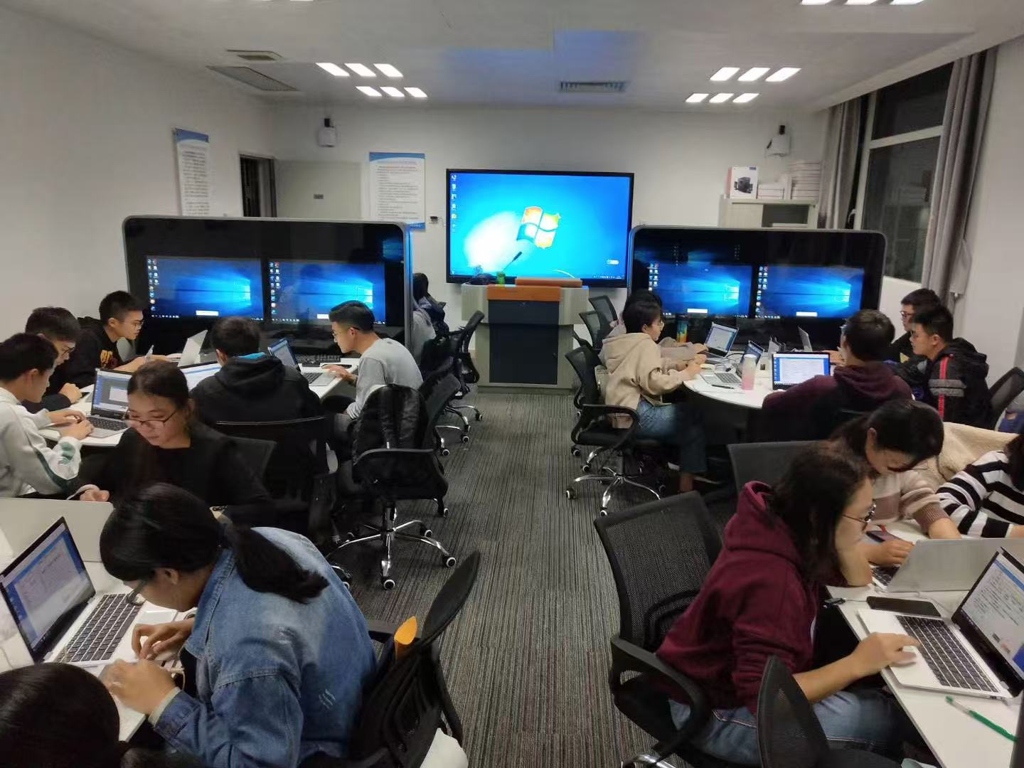 韦德官方网站健康保险综合实验室建成于2018年12月,主要用于健康保险类课程、养老保险类课程、医疗保险类课程、保险精算类课程、投资理财类课程、保险综合实训演练类课程的教学和科研使用。实验室现有实验用房使用面积70平方米,资产总值为114万多元,其中智能讨论实训套件信息岛8台,服务器1台,员工智能操作端40台,多媒体教学系统及配套设备一套。